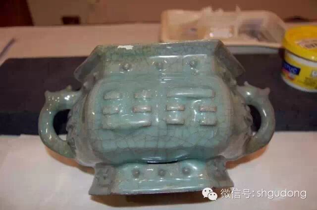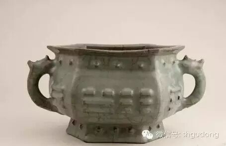 13.南宋官窑(或溪口龙泉官窑)六方八卦双龙耳鼓钉炉