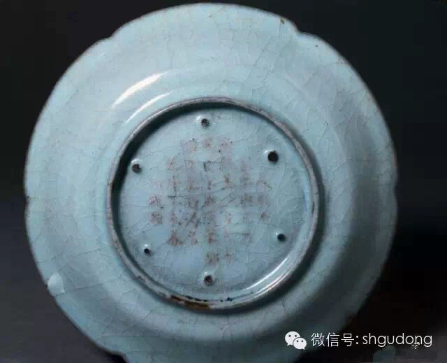 7.南宋修内司官窑乾隆御题花口盘(口沿包铜)