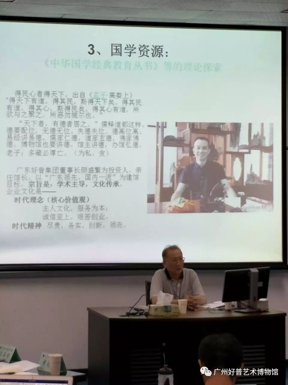 文化是城市的名片,更是城市的灵魂。而博物馆是广州建设文化强市、岭南文化中心、世界文化名城的目标着眼点。柯教授以广东好普集团董事长、好普艺术博物馆馆长、国学爱好者颜盛繁先生为典范,高度赞扬我馆馆长的建馆宗旨和经营理念,通古博今,以国学创意促进广州文创产业发展,为加快实施广州世界名城中华创意文化总工程添砖加瓦。