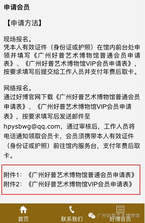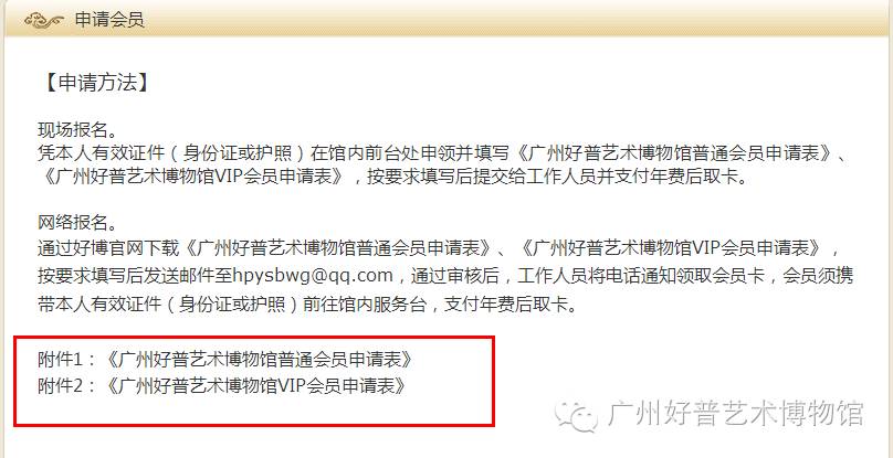 有意成为会员的亲,可在参观后移步至好普艺术博物馆交流室领取申请表格,或直接登录广州好普艺术博物官方网站(www.hpbwg.cn)下载申请表格,填写完毕后请邮寄或发送至hpysbwg@qq.com。