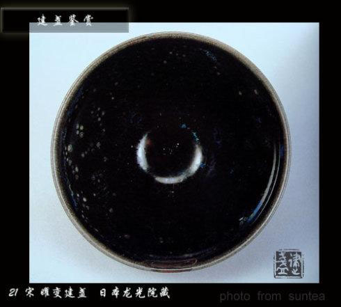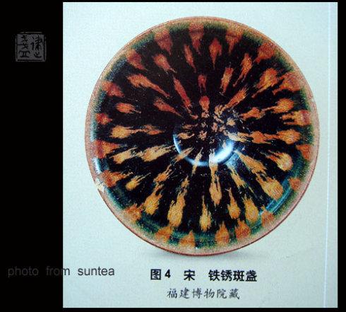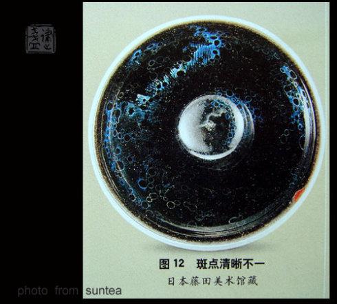 从陈教授上述描述,我们不难体会到曜变的美藏在斑纹深处,它就象夜明珠,当人们沉浸在“宝光”的美境中时,完全忘记了曜斑或夜明珠原本的形与色,它极象人的精神层面的美。这些宝光就是建盏的“魂魄”。曜斑反射出七彩宝光,银斑是单色宝光。宋代斗茶家就是“取其燠发茶采色也”。显然,斗茶必定在充足的阳光下进行。