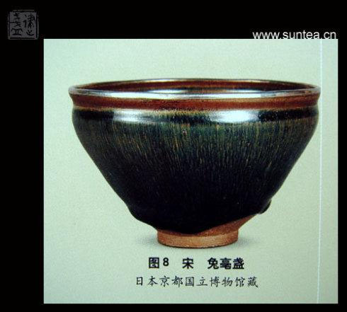 毫变盏与兔毫盏的特征要有明显区别。如果是兔毫盏中的某一种,就很难与社会沟通,因为条纹的变异程度难以界定。“毫色异者”不单指毫纹的形状变异或色彩变异,而是指两者都变。所以符合这一条件的只有曜变。