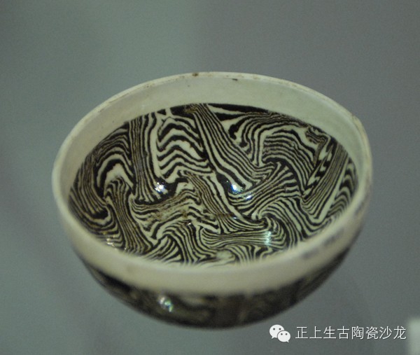 北宋·当阳峪窑绞胎席纹碗。黑白相间,常见席纹、羽纹,装饰性极强。