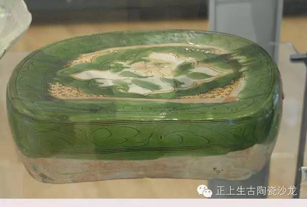 北宋·当阳峪窑典型的三彩剔花腰圆枕。现在全品也少见了。
