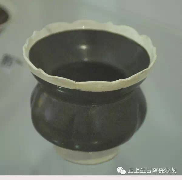 这块看着很像建窑了,应该不是。北方许多窑口都有仿建窑的产品,没有黑胎就上黑色的化妆土,总之要像就对了~