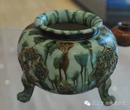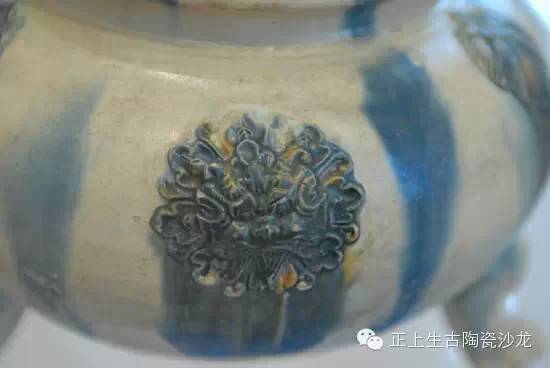唐代巩县窑这类香炉器形上虽然都一样,可是丰富的彩饰及贴塑,总是各个惊艳,让人百看不厌。楼下还有几个。