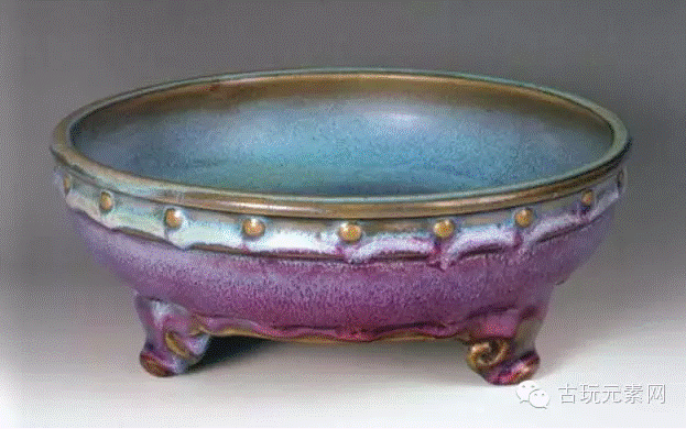 宋.钧窑鼓钉三足洗