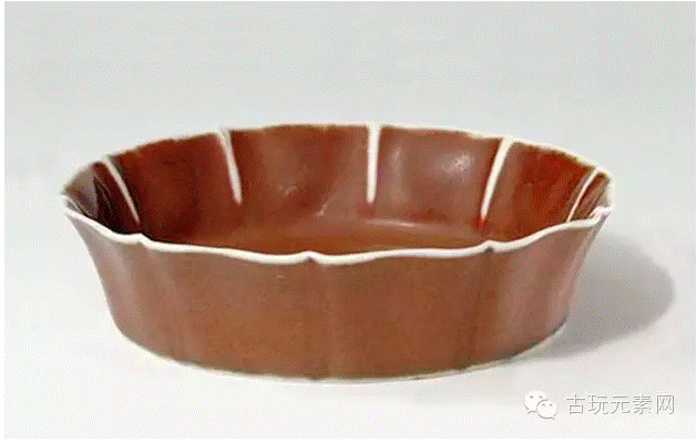 明宣德.霁红釉菱花式洗