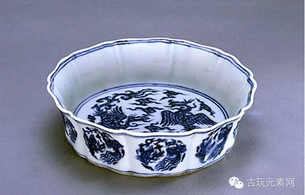 明宣德.青花鸾凤纹葵瓣洗